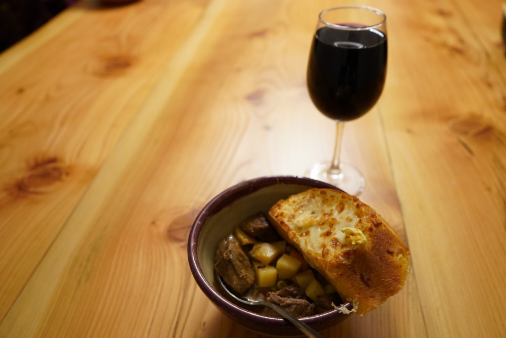 A hearty beef stew for the cold winter months. Serve with a red wine and soak up the savory broth with the toasted garlic mozzarella bread.