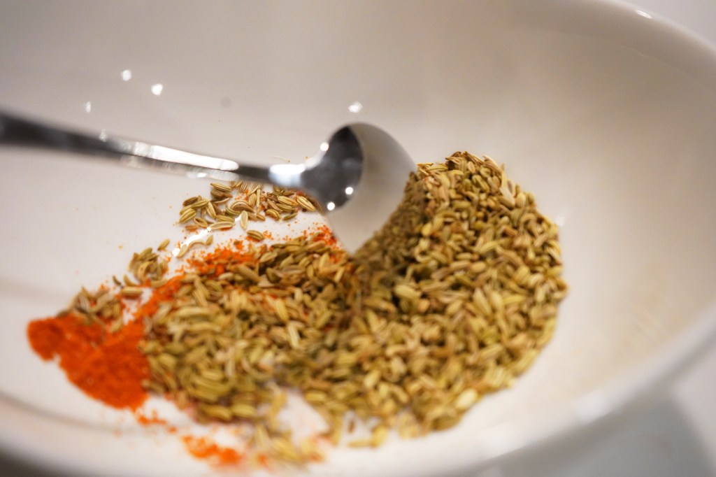 For seasoning mix, combine fennel seeds, cayenne, salt and pepper in a bowl and mix well.