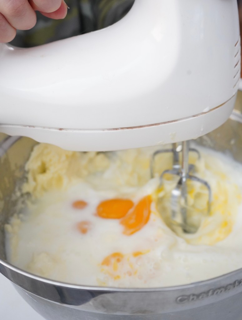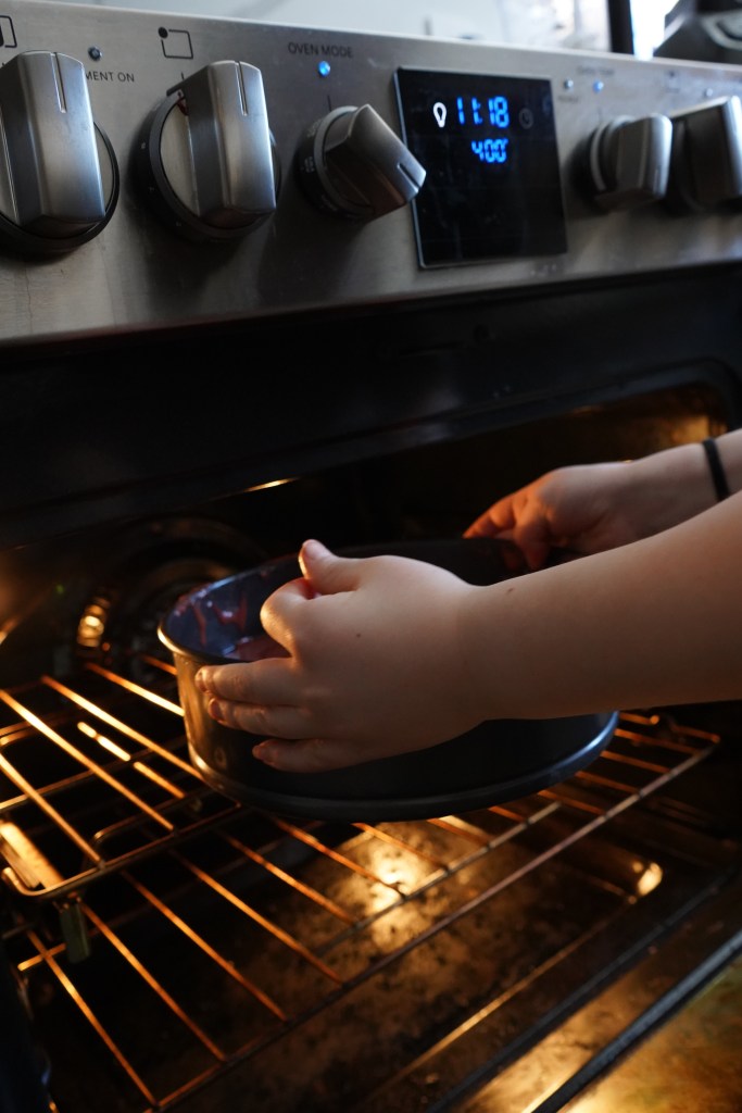 Add to 2 greased cake pans and bake at 400 degrees for 20-25 minutes or until toothpick comes out clean.