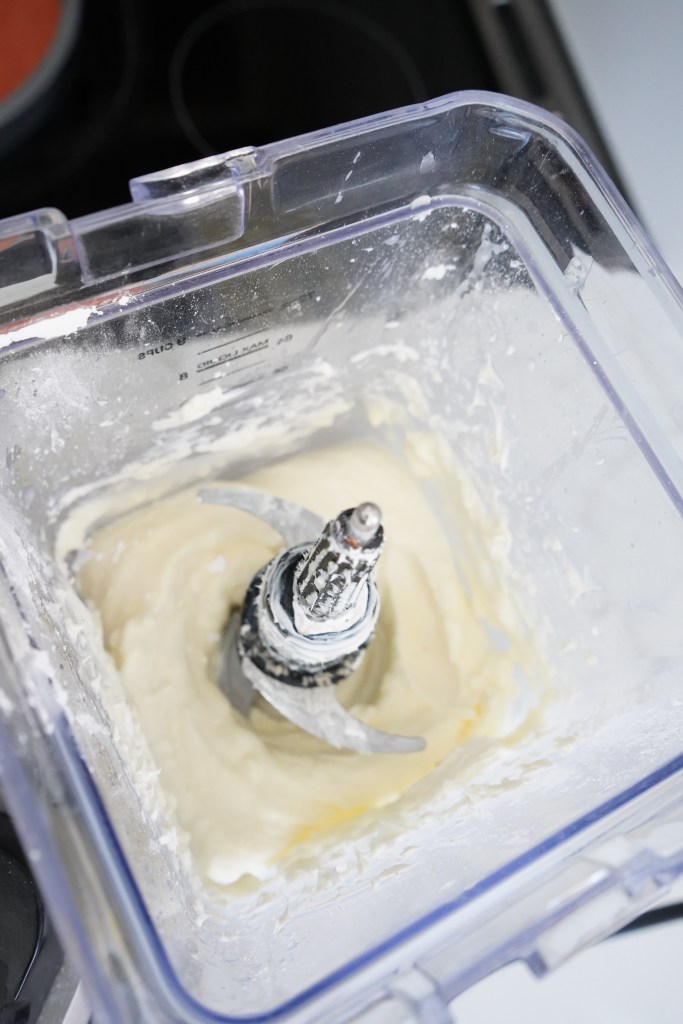 While the cake is baking make the cream cheese icing. Place all ingredients in a blender and mix until smooth.